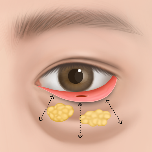 눈밑지방제거 후 옆 지방들이 밀려나와 눈밑불룩이 재발되거나 눈밑지방이 함몰되어 눈밑꺼짐이 될 수 있습니다.