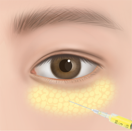 허벅지 또는 복부에서 채취한 순수 지방을 아이뷰만의 방법으로 나노화해 볼륨이 부족한 눈밑에 이식