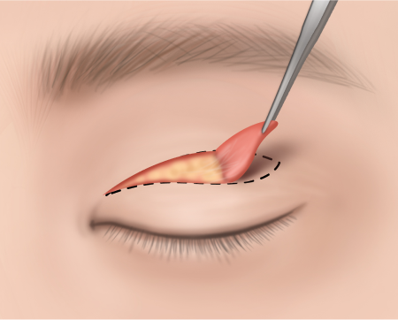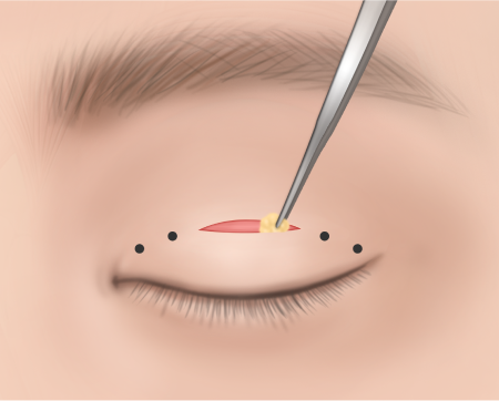 절개와 매몰법의 중간형태로 작은 절개창을 만든 후 피부의 진피층을 눈 뜨는 근육에 연결하여 쌍꺼풀 라인을 만드는 수술입니다.
