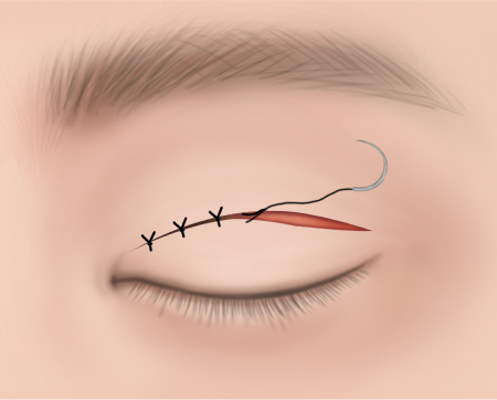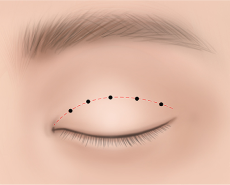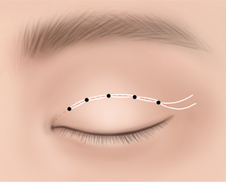 눈꺼풀에 미세한 구멍을 내 피부와 근육을 실로 묶어 라인을 만드는 수술입니다.
