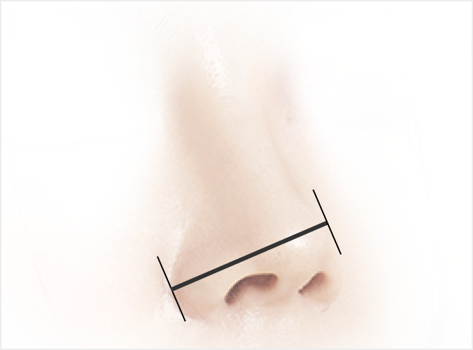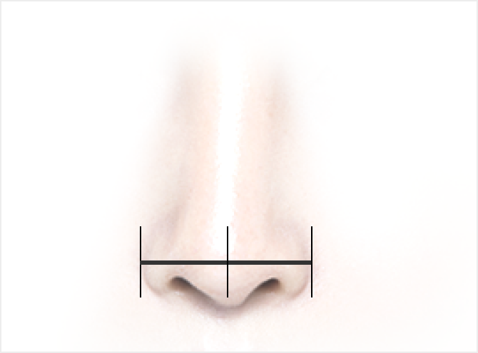 정면에서 코의 넓이는 전체적인 얼굴 이미지를 좌우합니다. 가로 얼굴 비율에 따른 최적의 코넓이를 찾아드립니다.