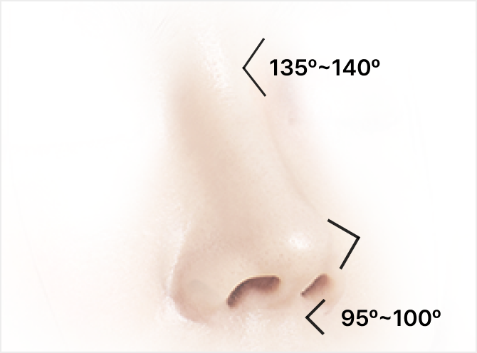 코끝과 콧대의 높이는 코의 각도에 따라 달라질 수 있습니다. 정밀분석으로 이상적인 코의 각도를 찾아 드립니다.